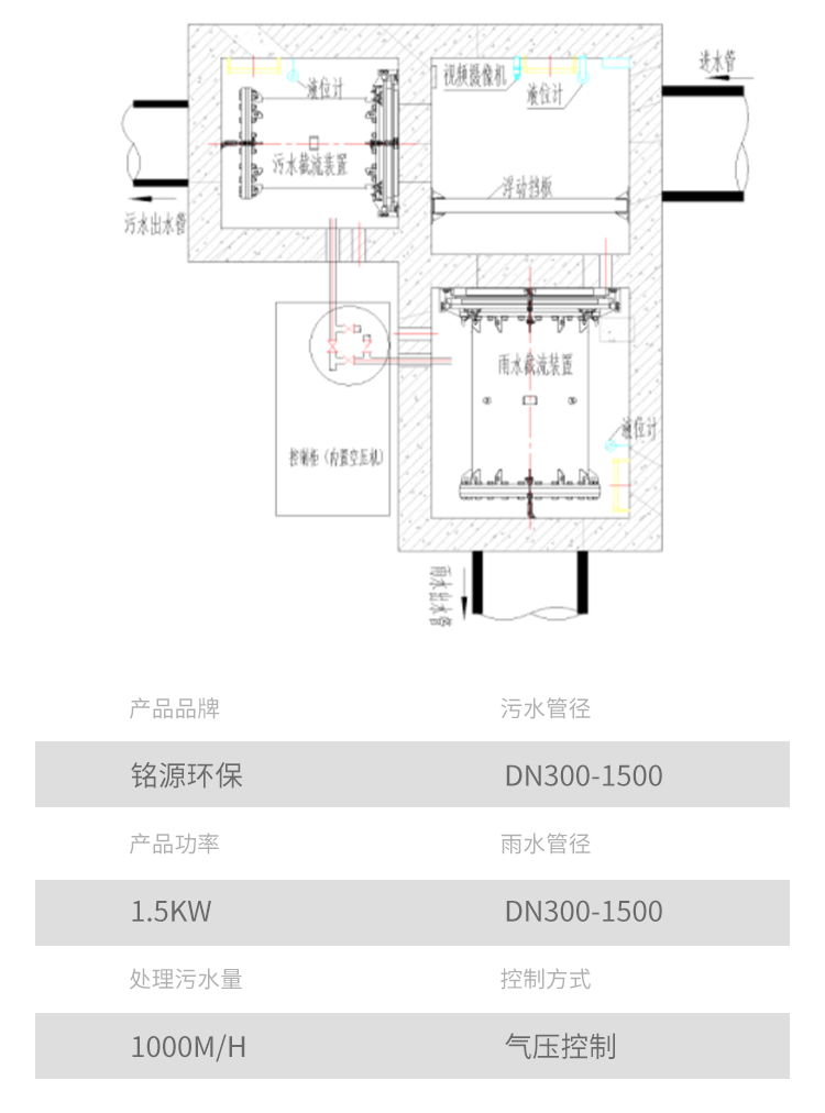 8、防缠绕防堵塞能力强∶由于污水中的杂物较多,此装置安装后的过流通道和市政管道的流道保持一致、平滑,不会产生缠绕堵塞;